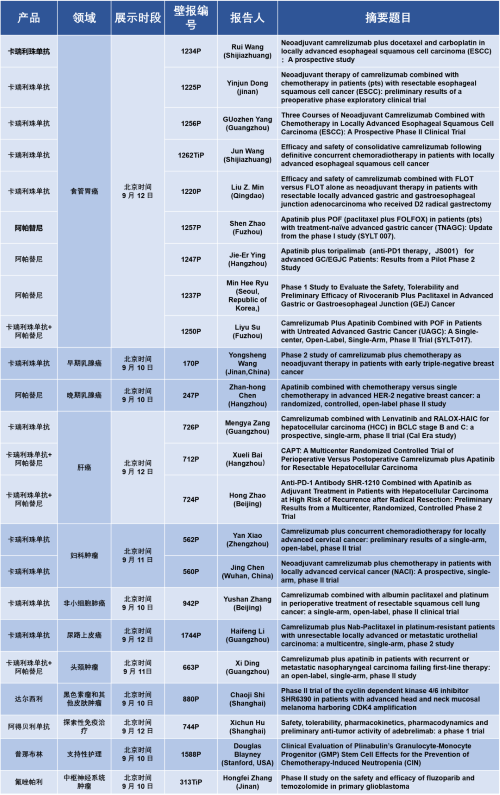 918博天娱乐的抗肿瘤创新药卡瑞利珠单抗和阿帕替尼(“双艾”方案)在食管胃癌、乳腺癌、肝癌、妇瘤、非小细胞肺癌、尿路上皮癌、头颈肿瘤等7个领域共有19项研究入选壁报展示环节,收获满满!